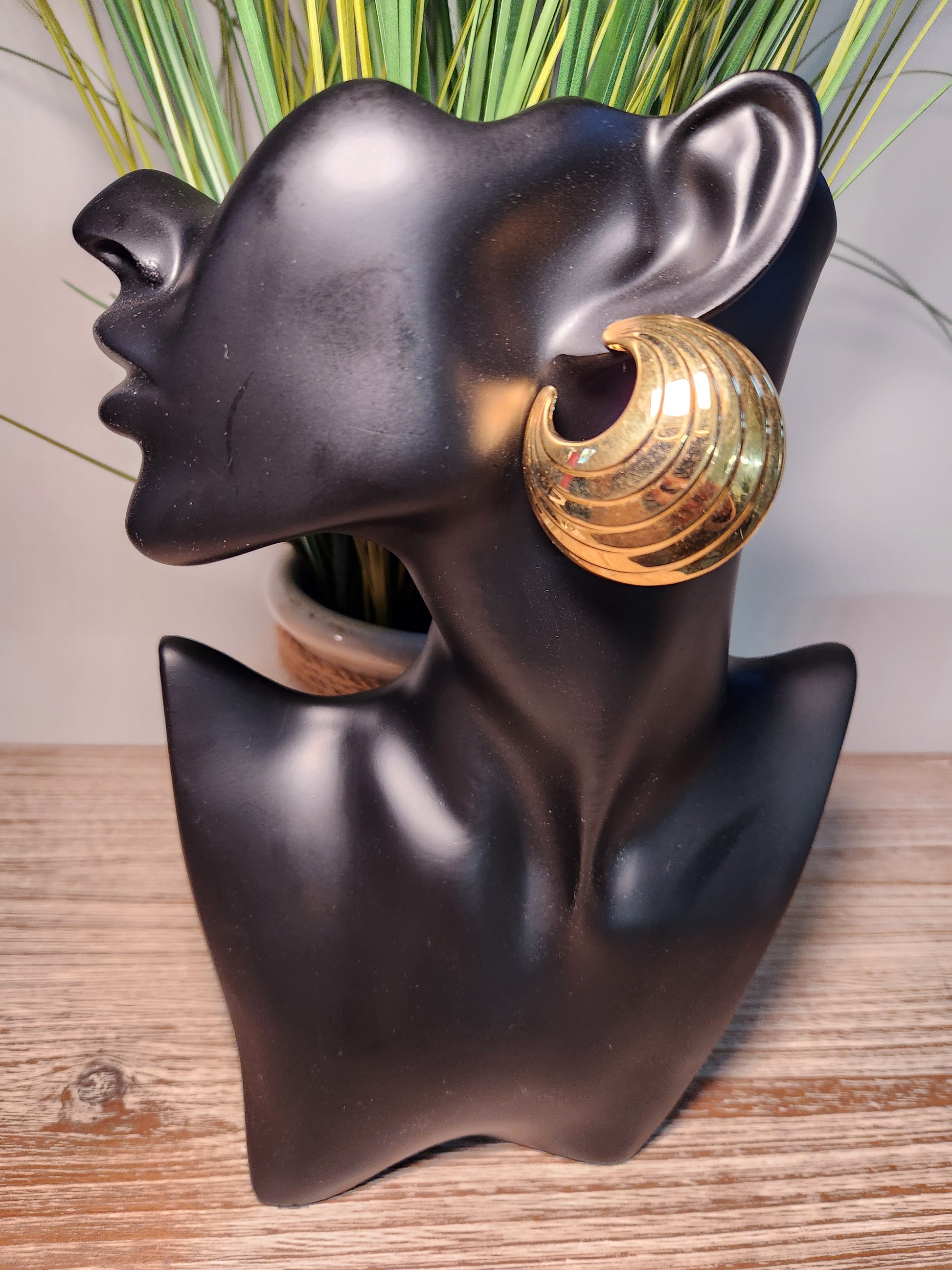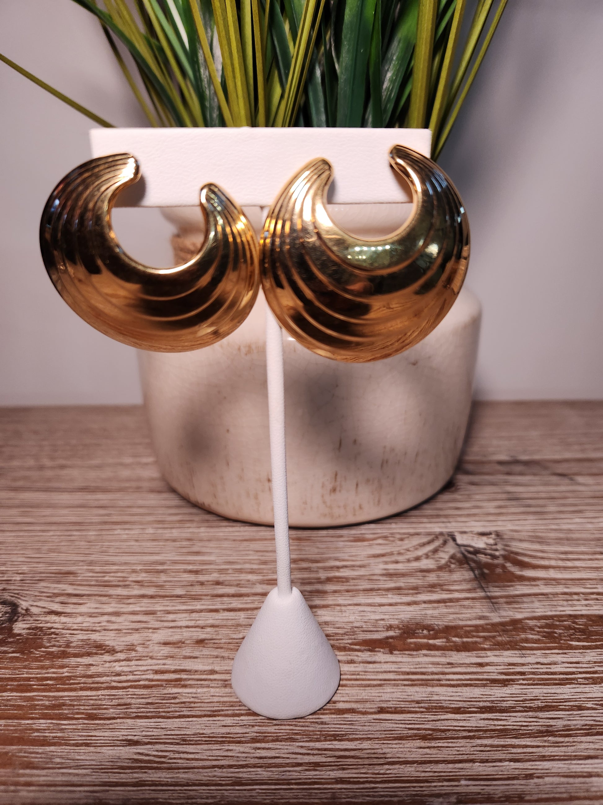 Step up your gane with our Vintage Gold Shell Earrings. These statement pieces, measuring 2 inches in length, are lightweight and crafted with a beautiful gold tone. Experience luxury in every detail with these elegant and exclusive earrings.